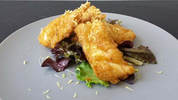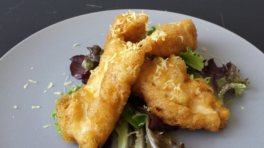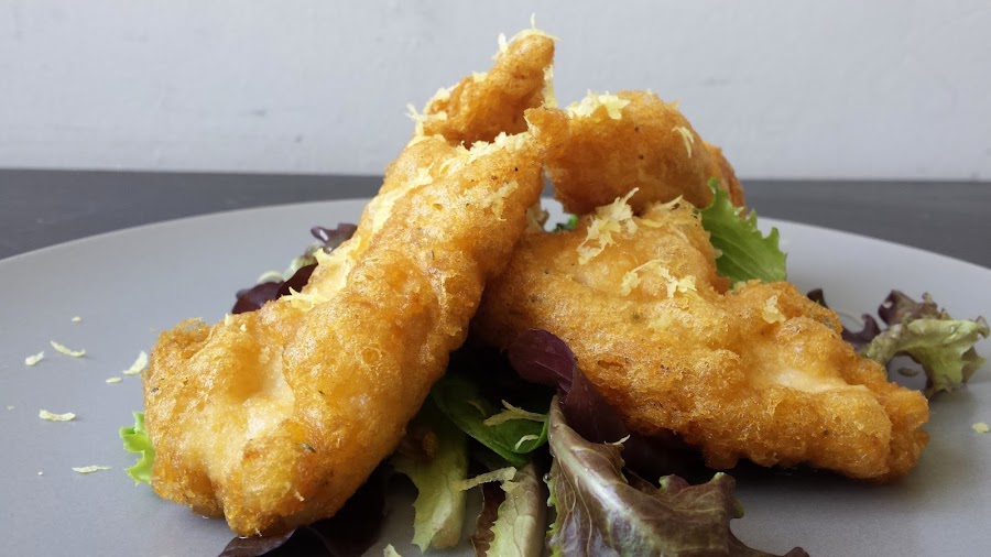 Para montar nuestro plato lo que haremos será pòner de base unas hojas de lechugas de nuestra preferencia, colocaremos nuestro Pollo Orly sobre estas, rociaremos con una cucharada por plato de la miel de naranja, rallaremos la cascara del limón y le añadiremos unas gotas de su zumo para obtener un contraste agri-dulce con una chispa de acidez que viene muy bien para este tipo de platos.