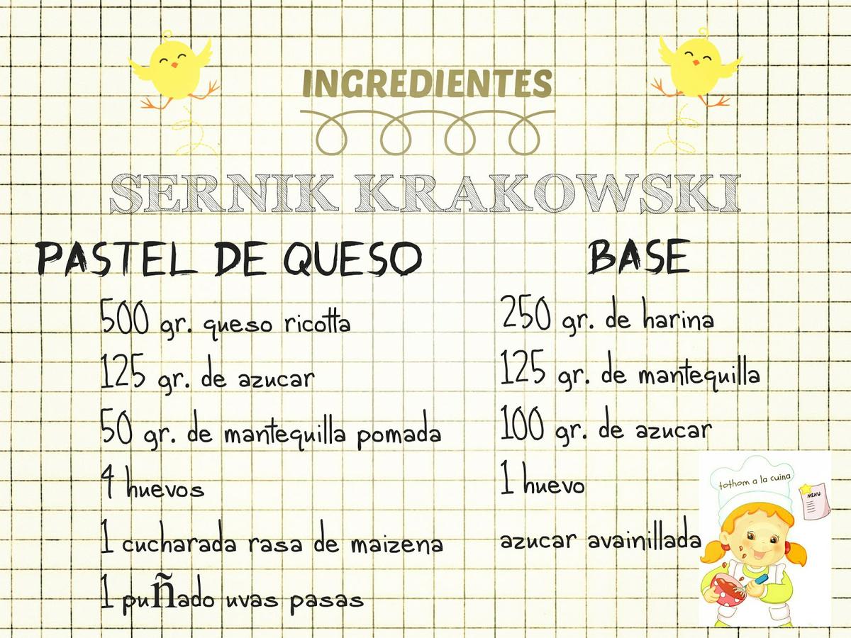 Esta tarta es típica de la zona de Cracovia y como curiosidad, no se hornea en molde redondo como nuestros tradicionales cheesecake, sino en moldes rectangulares.