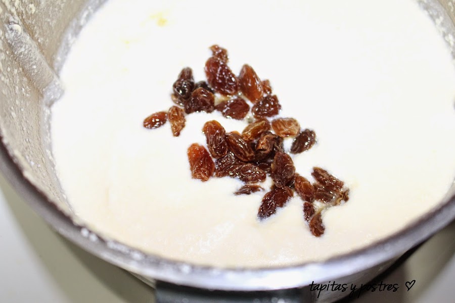 Y las pasas, sin el vino. Terminamos de mezclar con una espátula.