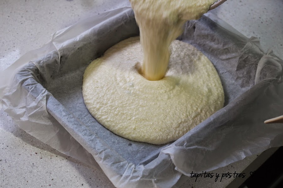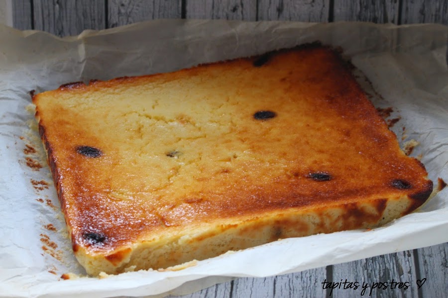 A mi me ha gustado mucho, es un pastel de queso suave, con un ligero sabor a limón, dulce y abizcochado. Me recuerda a las tartas de queso industriales que venden en algunos comercios. La verdad es que la receta es muy sencilla, y yo la he adaptado a la thermomix. He modificado algunas cantidades y, por error, no he montado las claras sino que he batido los huevos enteros. Pero el resultado es buenísimo, así que nos ahorramos ese paso.