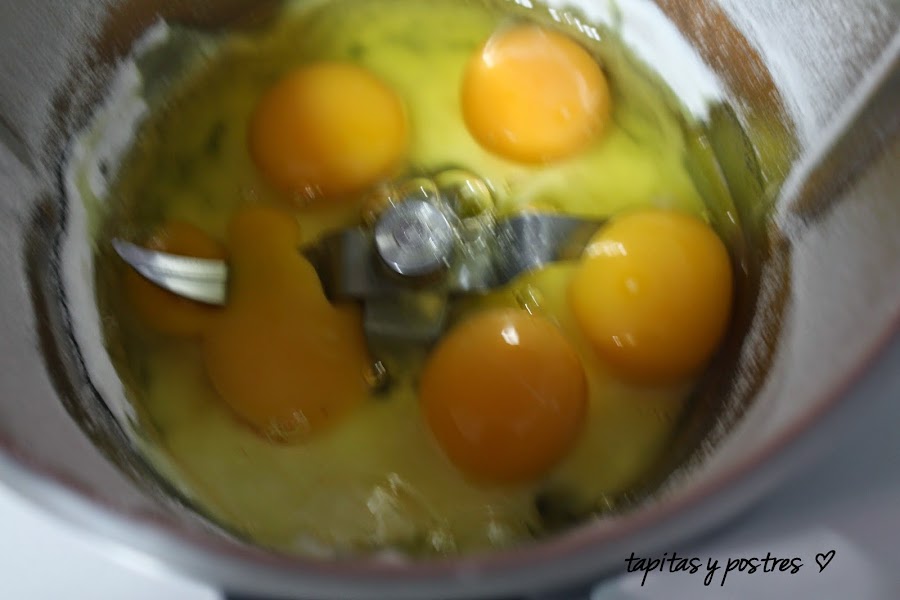 Añadimos los huevos y mezclamos 30 segundos a velocidad 4.
