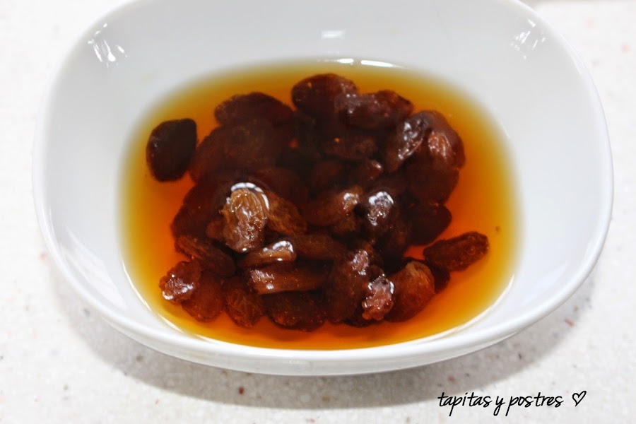 - 50 gr de uvas pasas remojadas en vino dulce o moscatel.