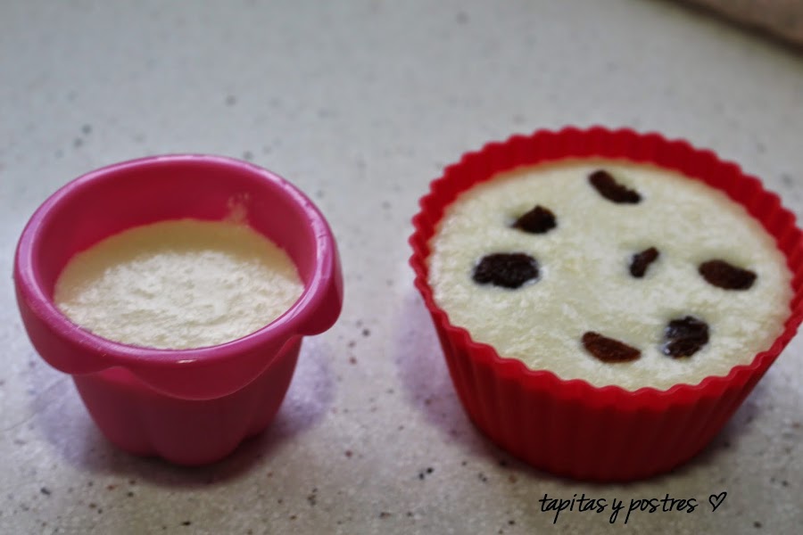 Como me sobró mezcla, la eché en estos moldes de silicona y las hice en el microondas, para probar. Cinco minutos a 800 w y cinco minutos más dentro del horno sin abrir.