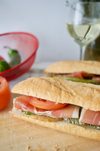Y es que, estando por tierras peruanas, se me antoja comer todo lo de mi tierra y como no puedo porque los ingredientes, aunque los hay, no... son... lo... mismo..... Pues, cuando he llegado a casa, me he comprado un pan, jamón, lomo de cerdo, pimiento y tomate y al lío. Un serranito sevillano magnífico.