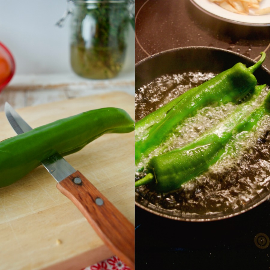 Wash and dry green peppers and make 4 cuts lengthwise not until the end.