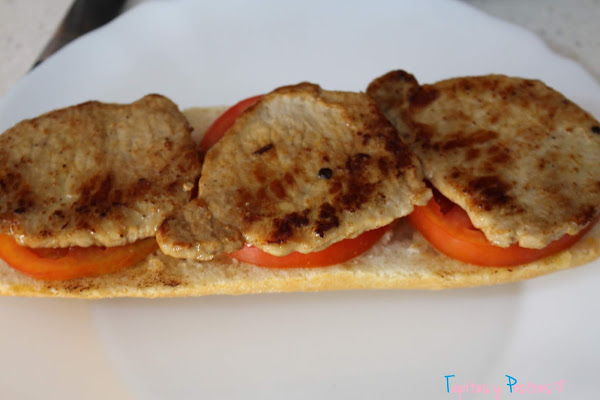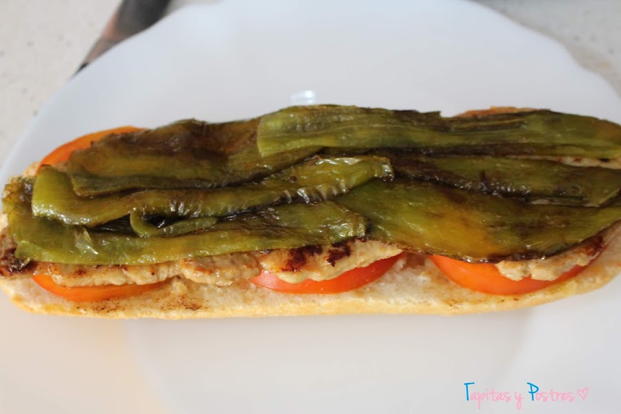Cuando ya tengamos los pimientos y el lomo listo, vamos a montar el bocadillo.