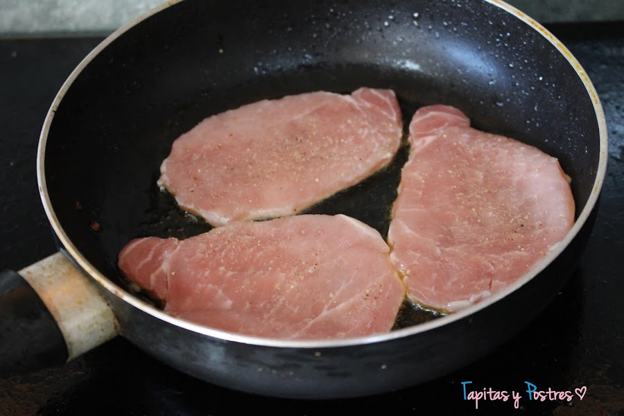 En ese mismo aceite vamos a dorar los filetes de lomo que habremos salpimentado antes.