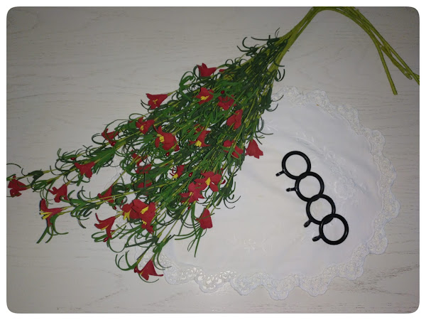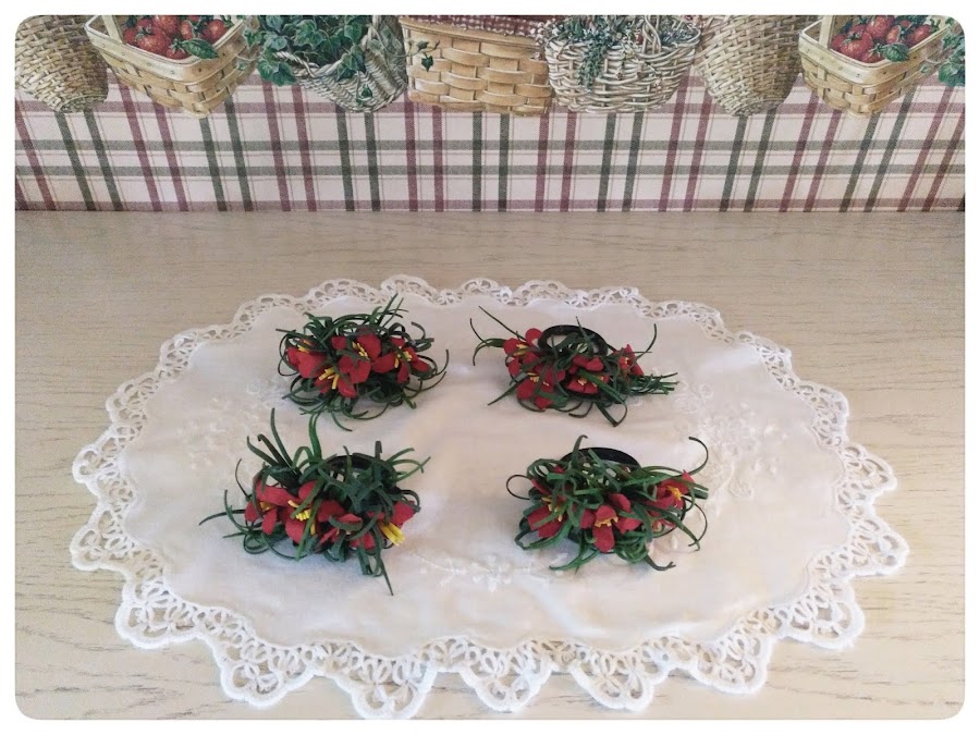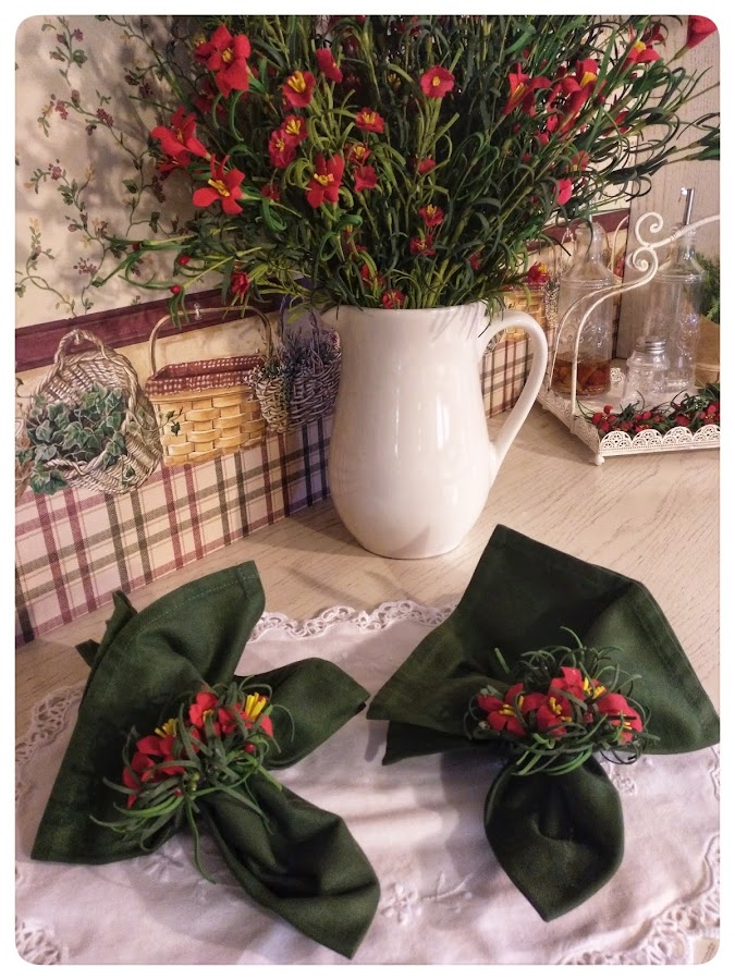 Con un ramo de flores comprado en los.. unas anillas de colgar cortinas compradas también en los .. y la súper pistola de silicona caliente, hice estos servilleteros para la mesa de la cocina.