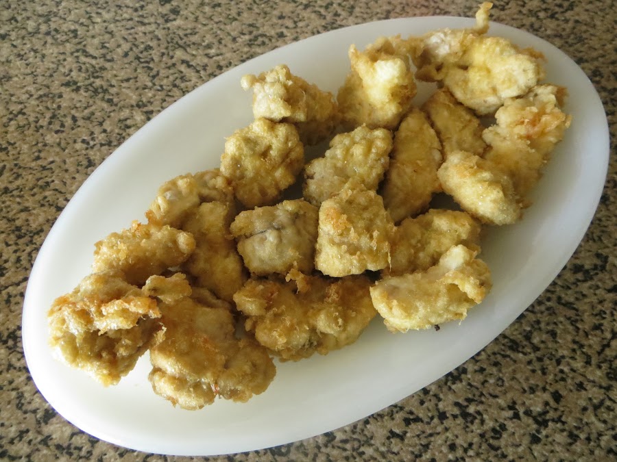 Una vez fríos se le quitan las telillas que queden, se hacen porciones y se salan. Se pone a calentar la freidora, se pasan los trozos por harina y huevo batido y se ponen a freír un par de minutos. Se dejan escurrir en papel de cocina y ya están listos para servir.