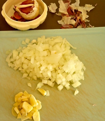 Seguidamente, baja el fuego al número 4 de la placa vitrocerámica y añade la cebolla picada junto a una poquita de sal fina.