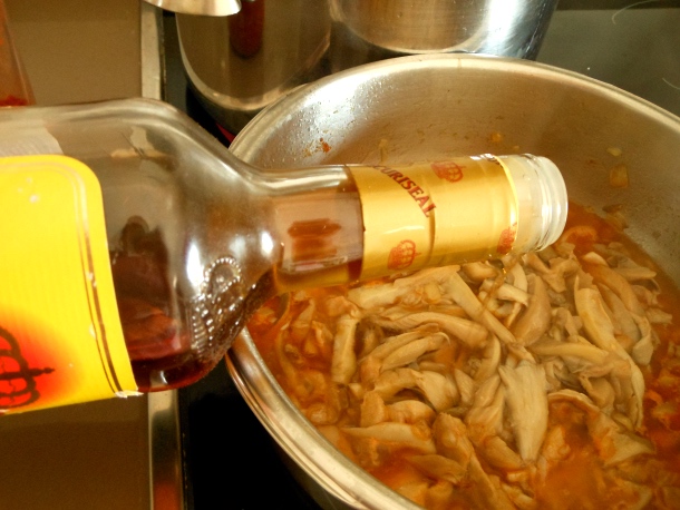 Después tapa la cacerola y deja que las setas se cocinen a fuego medio durante 20 minutos o hasta que el líquido haya reducido a la mitad de su volumen.