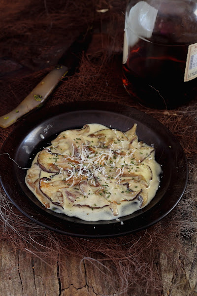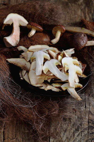 En una sartén ponemos un hilo de aceite y salteamos los ceps, dejamos que pierdan el agua que puedan tener.