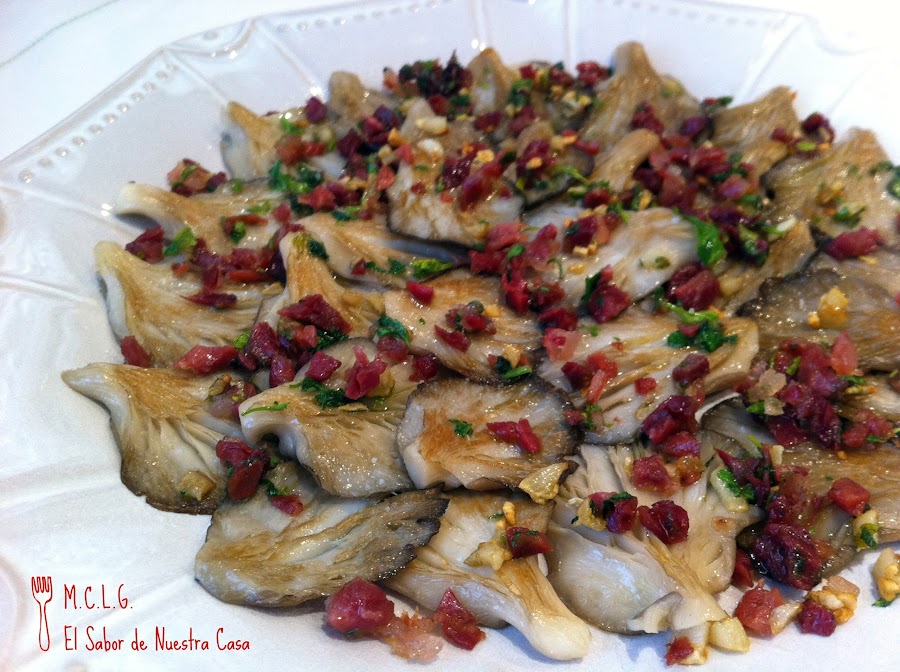Pon el aceite en una sartén y coloca las setas, haz a la plancha por ambos lados poniéndole sal y pimienta hasta que se doren un poco.