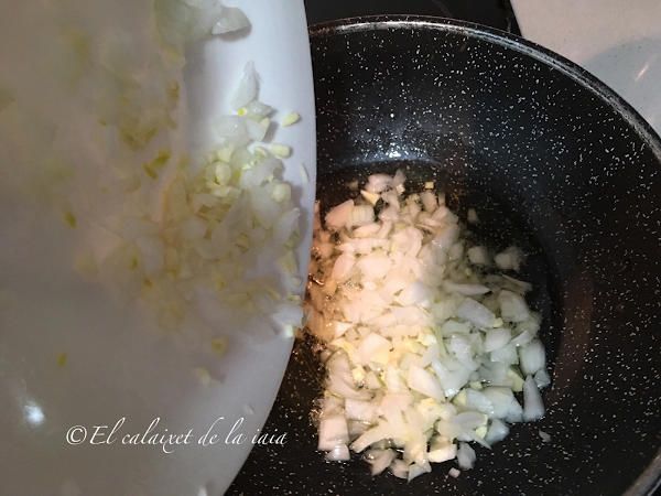 Ponemos a calentar aceite de oliva y pochamos la cebolla y los ajos picado no muy pequeño