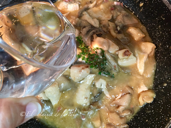 regamos con la copa de vino blanco, removemos y dejamos evaporar el alcohol