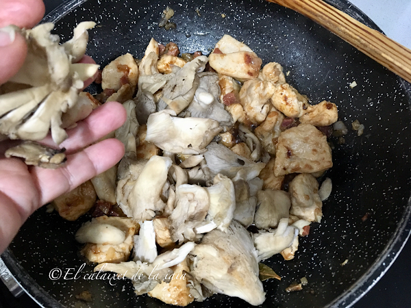 incorporamos al sofrito las setas limpias y la sal, removeremos de nuevo