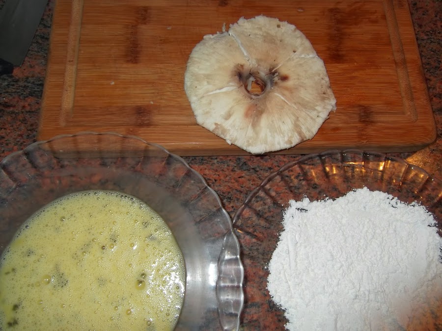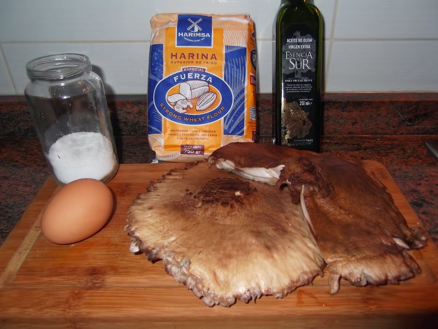 Lo primero es limpiar con mucho cuidado la seta, se lavan, se les quita el pie o tallo completamente, se limpian un poco las escamas superiores y en la parte baja se le quitan las láminas que son blandas, por lo que salen con facilidad. Esto hay que realizarlo con cuidado para que la seta no pierda su carne, así como su forma original. Las podéis cortar en diferentes pedazos o si las tenéis entera, como ha ocurrido en mi caso, la podéis dejar entera que quedará mucho más vistosa en el plato.