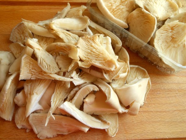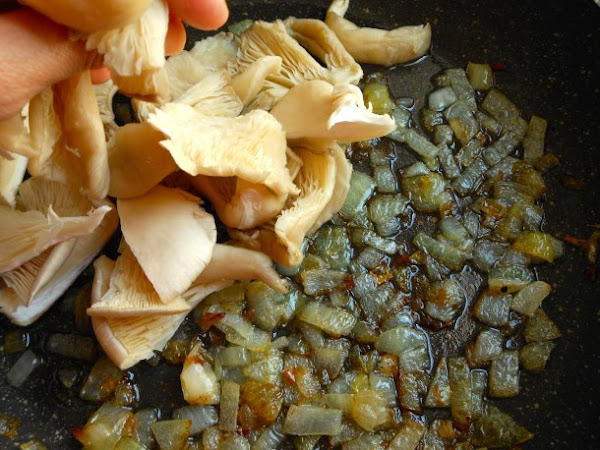 Mientras tanto, corta las setas; no es necesario utilizar cuchillos para realizar esta operación, simplemente raja las setas con los dedos.
