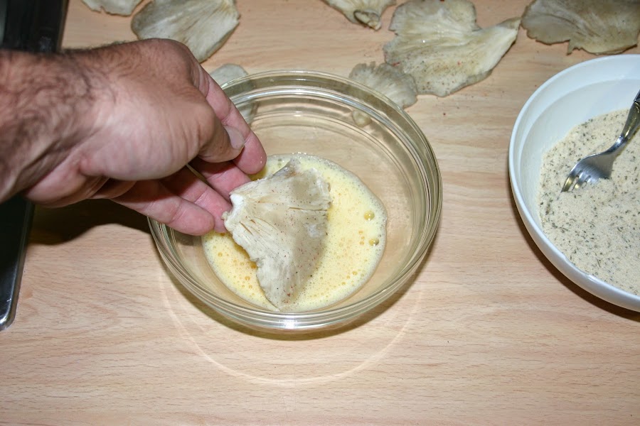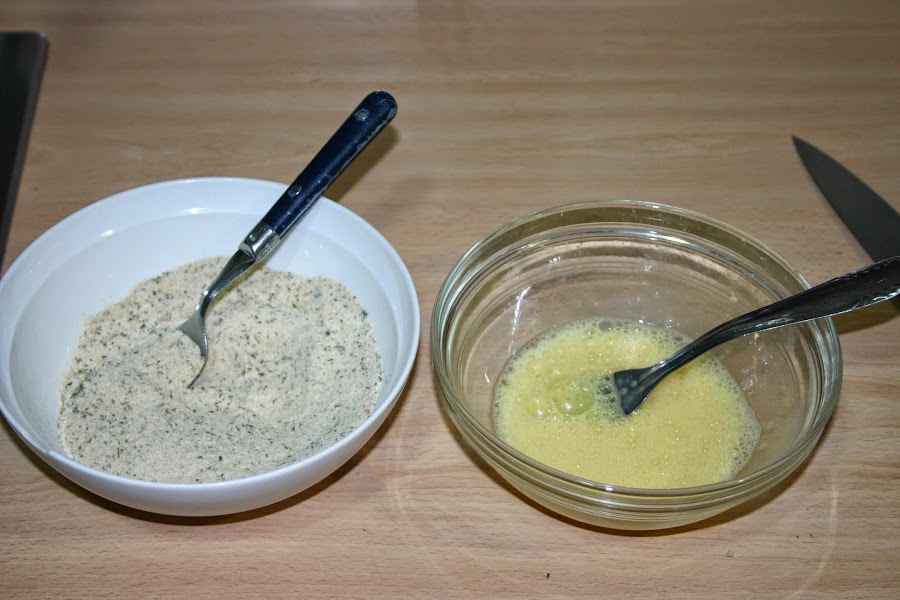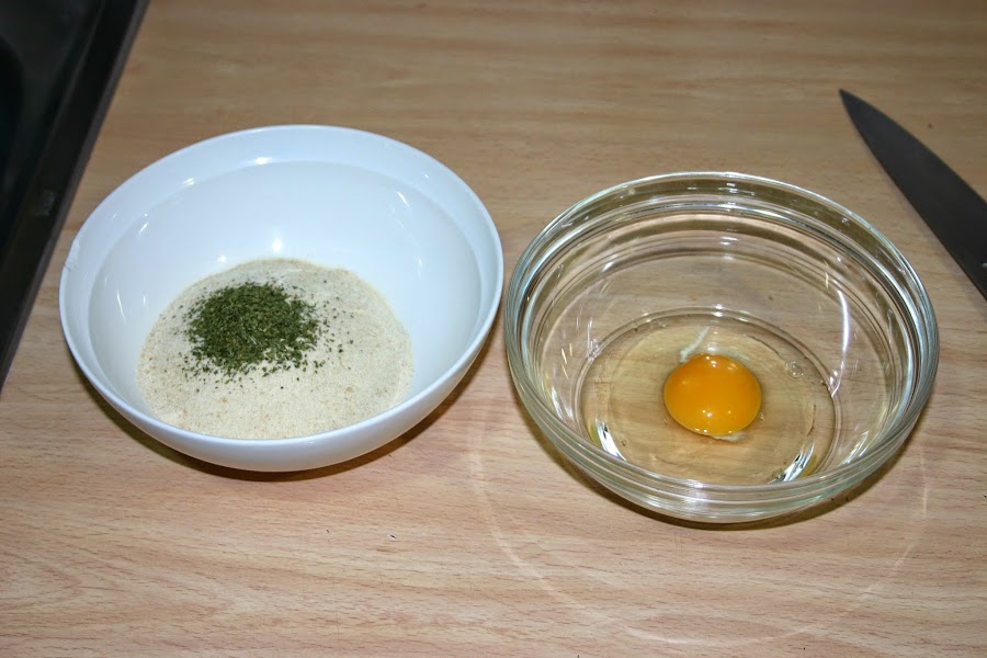 en un bol ponemos la harina, el pan rallado y el perejil y en el otro el huevo