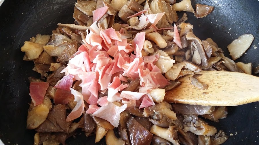 Para finalizar ya solo nos queda trocear las 2 lonchas de jamón y dejar un par de minutos para que todo coja sabor.