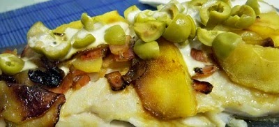 Sábado: merluza con aceitunas y manzana. Nos ponemos las botas con esta riquísima merluza.