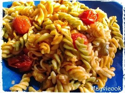Martes: fusilli con salsa de berenjenas. Simplemente deliciosos con esa salsa.