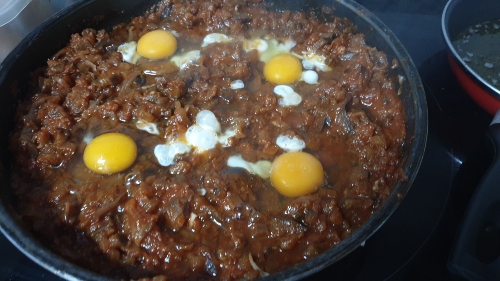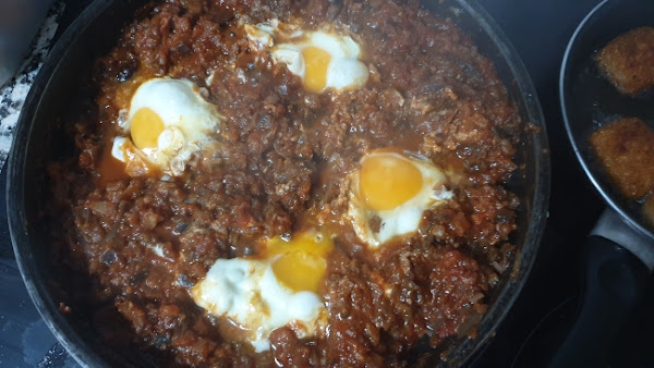Este es un plato tradicional de la cocina árabe. El Shakshuka son unos huevos escalfados cocinados en una salsa de tomate con cebolla, guindilla, comino Un plato muy sabroso y nutritivo ideal para degustar mojando pan.
