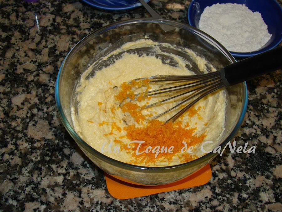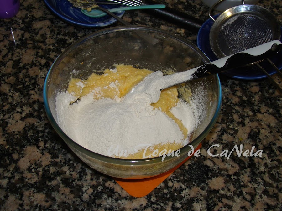 La harina tamizada con la levadura. Mezclar muy bien sin batir hasta que quede muy cremosa.