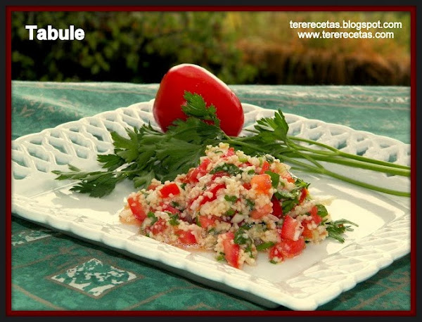 El tabule o tabbouleh es una ensalada fresca de orígenes árabes muy sana y refrescante. Los libaneses consideran al tabule su plato nacional dado que incorpora los colores de su bandera: rojo (tomate), blanco (cebolla) y el verde (perejil) y jugo de limón, aceite de oliva y cous cous (sémola).