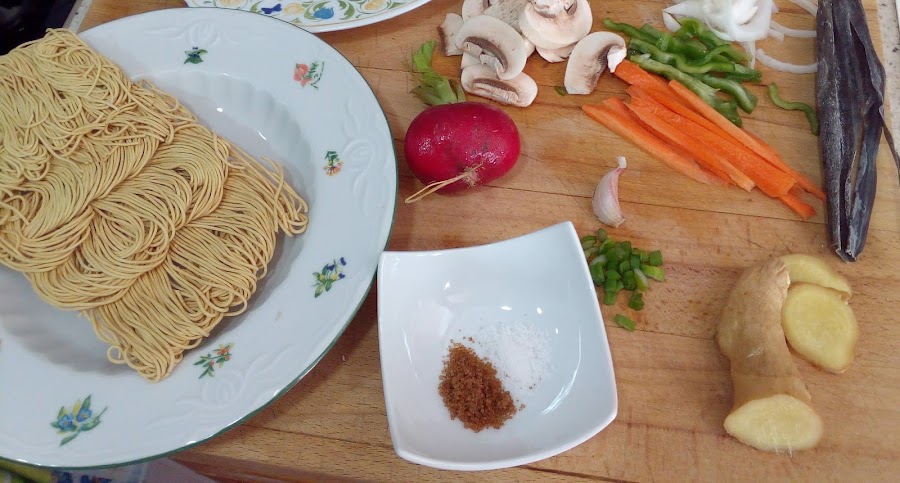 Y 150 grms. de fideos ramen (fideos de trigo).