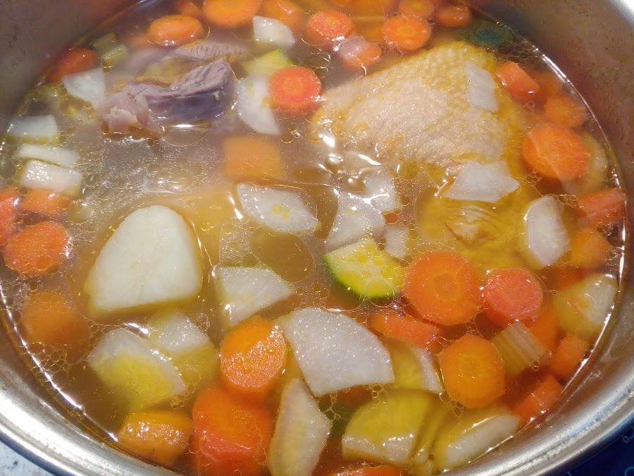 Colar el caldo y reservar caliente (la verdura se puede guardar para realizar una crema con una parte del caldo o para otras recetas, incluso si queda parte de la carne).