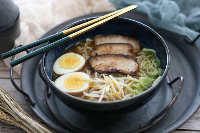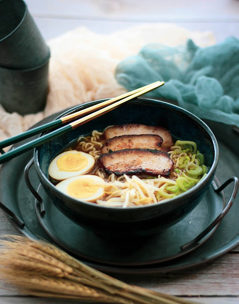 Aquí os traigo mi ramen favorito, el de soja. La receta es una mezcla de libros, recetas por internet y lo que aprendí en el curso de cocina que recibí en Japón hace ya 2 años. Para esta receta hace falta tiempo y paciencia. Un día se hace el caldo y la panceta, se deja reposar la panceta por la noche y al día siguiente ya se puede comer. Si, vagos, voy a trabajar en una receta que se pueda comer en el día y no se tarde tanto, que ya os conozco. jaja.