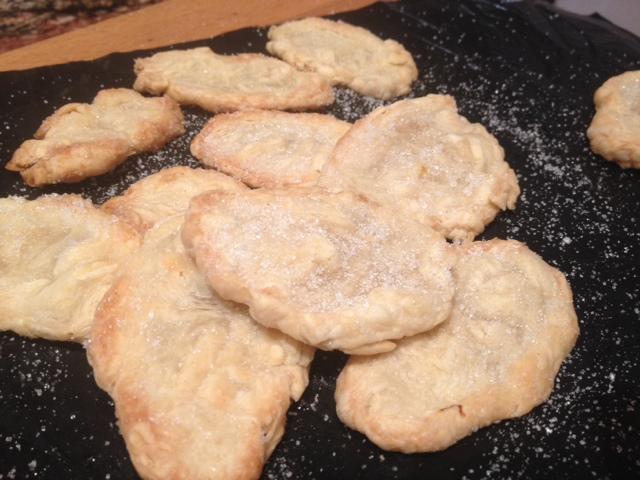 Formé óvalos chatos y lo espolvoreé con azúcar?y al horno 25 minutos.