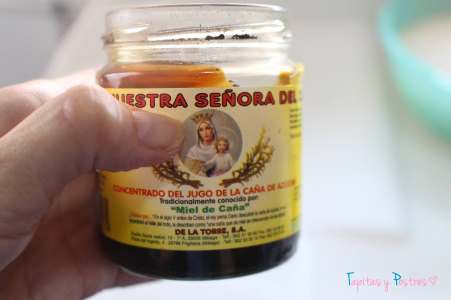 La receta original usa melaza de uva. Pero es un ingrediente difícil de encontrar, así que he usado miel de caña (un producto muy de mi tierra) que tiene una consistencia similar.