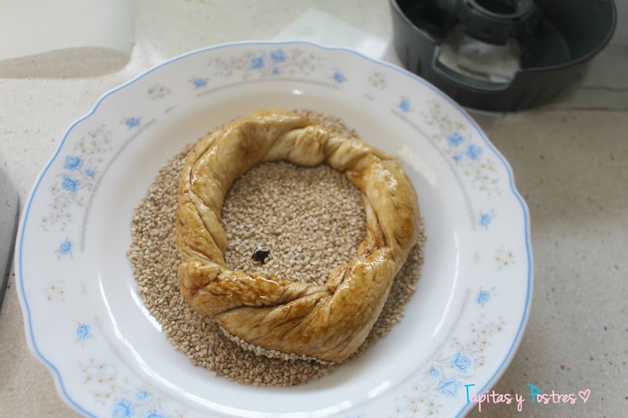 Encontré la receta en una página especializada en la gastronomía de Turquía, y fue verlo y enamorarme. Esa apariencia trenzada cubierta de semillas de sésamo me llamó mucho la atención. Y exceptuando el sésamo (que tuve que comprarlo) todos los demás ingredientes los tenía en casa.