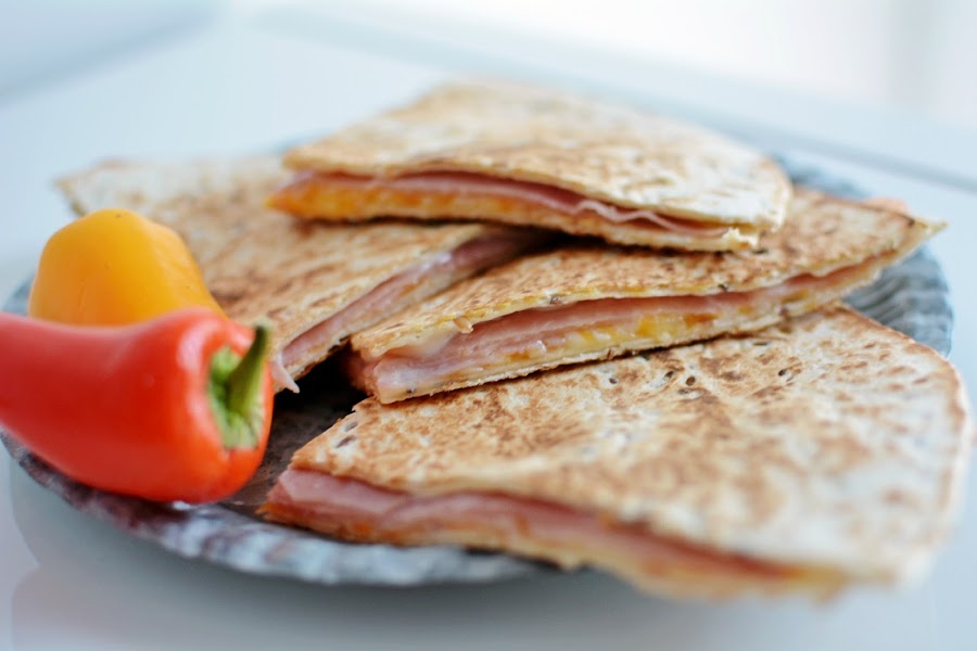 Ponemos a calentar sobre una sartén o plancha sin necesidad de poner aceite. Cuando veamos que empieza a dorar tapamos con otra tortilla de harina y le damos la vuelta. Doramos también por el otro lado y calentamos para que el queso se derrita.