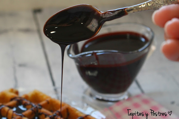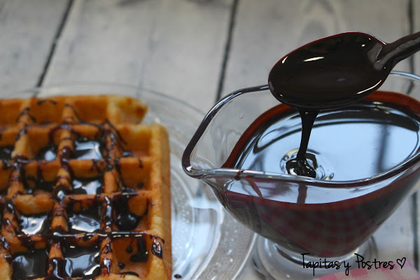 Ella lo usa para una receta en concreto, yo la dejo en pendientes tambien, pero de momento este sirope de chocolate me ha servido para endulzar unos gofres, y ya sabéis que para helados, tortitas, crêpes...las posibilidades de uso son muchas y guardado en la nevera en un bote hermético, nos durará mucho.