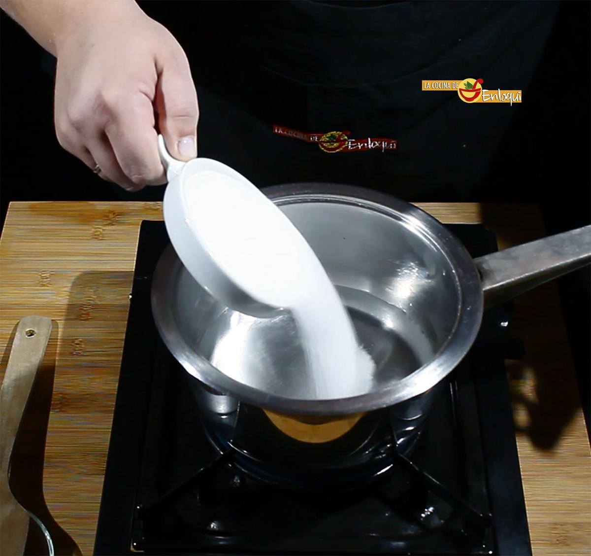 Lo primero que debes hacer para preparar el sirope de fresa casero es poner en un cazo el agua junto con el azúcar (o la stevia si eliges esta opción) a cocer. Deja hervir el tiempo suficiente para que el agua se evapore un poco y nos quede un jarabe dulce o almíbar.