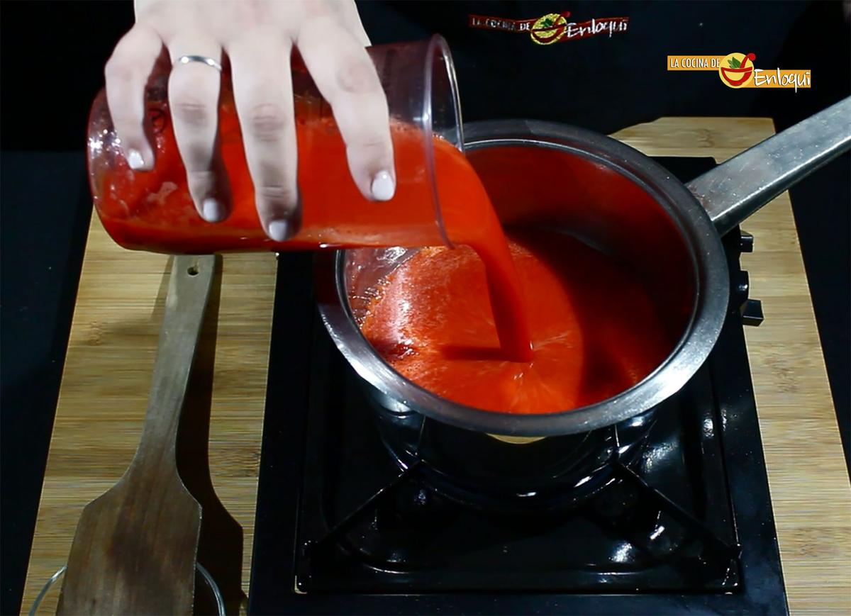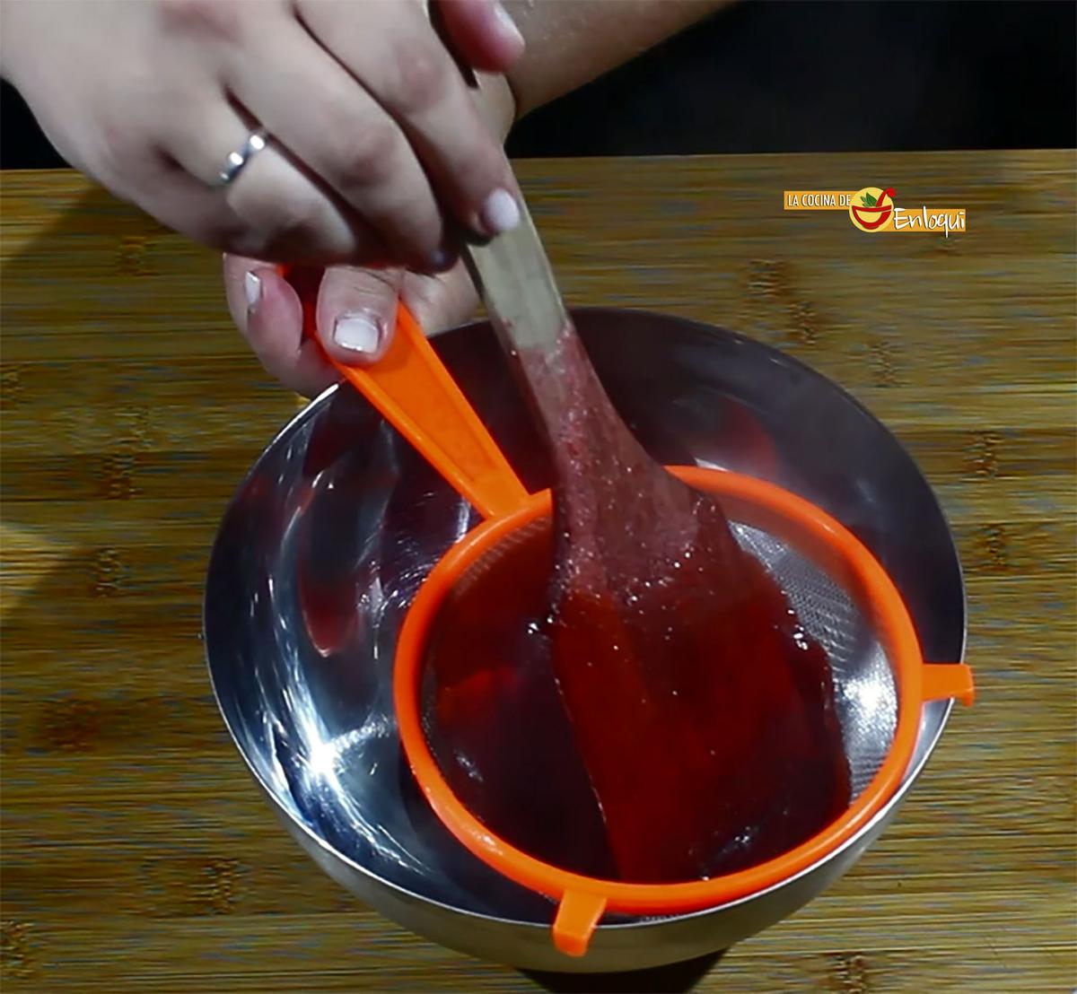 A continuación pasa todo por un colador para eliminar cualquier trocito y que nos quede un sirope muy fino.