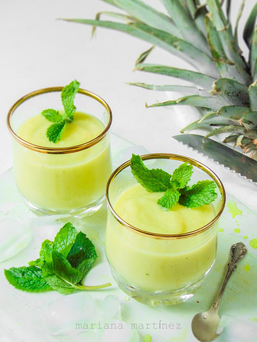Esta receta que les comparto en este post tiene muchos nutrientes, toda las vitaminas y minerales presentes en las tres frutas, porque recuerden que el aguacate o avocado o palta, como lo llames, también es una fruta; el potasio y magnesio de la banana y el aguacate, la grasa saludable del aguacate y la fibra de la piña.
