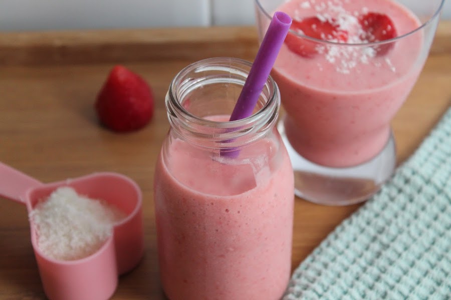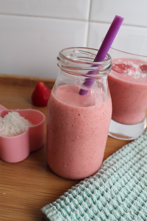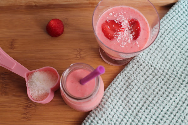 Para celebrarlo, hoy tenemos una receta refrescante y saludable en forma de batido: smoothie de fresa y coco. Se trata de una receta basada en esta de la genial Martha Stewart, cuya página os animo a visitar.