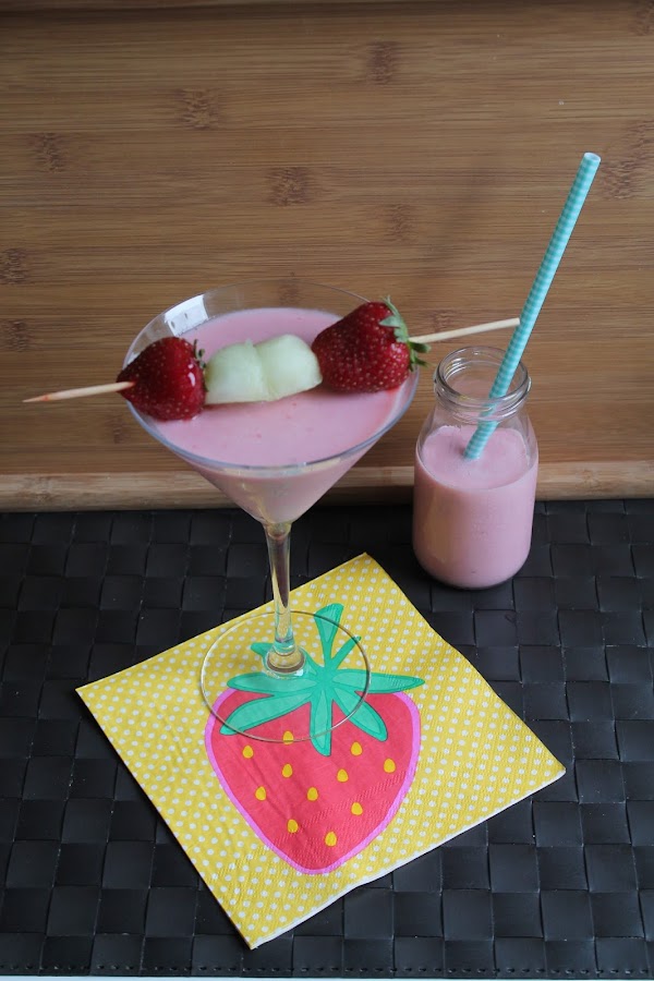 Este smoothie se me ocurrió cuando el otro día haciendo la compra me entro la nostalgia recordando tiempos de la infancia en los que iba de vacaciones al Mediterráneo. Recuerdo con tristeza el camino de vuelta ya a finales de agosto que ponía fin a la temporada de amigos, playa y fiestas. Y me vino a la mente el recuerdo de los puestos de melones que veía por la carretera y en los que mi madre siempre paraba a comprar. Me parecía curiosísimo ver señores vendiendo en medio de la nada, jajaja! Así que entre estas divagaciones, yo que no soy muy amante de la fruta, salí del supermercado con un melón XXL. Al llegar a casa no sabía que hacer, así que dando vueltas a las neuronas se me ocurrió combinarlo con una fruta ácida para contrastar el dulzor del melón y fué así como surgió el smoothie de melón y fresa. Aquí os cuento cómo prepararlo.