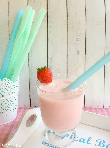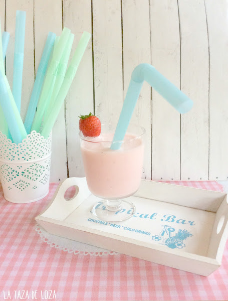Con estos calores verdaderamente hay que tomarse la cosa con calma, este verano lo tenemos con mucho viento de levante, es un aire africano que nos pega en toda regla, ideal eso sí para los que vienen a estas tierras del sur como Tarifa, Zahara de los Atunes... con sus tablas para hacer wind surf y demás deportes de viento y los ves llegar a las playas cargados de esos artilugios inmensos con esas alas llenas de colores, esa sensación de libertad que aunque tú estás sentada leyendo tranquilamente en tu hamaca te contagia... pero para los que no estamos en esos menesteres de deporte se hace pesado este viento de levante día a día pues es un aire seco y muy caliente. Da gusto ver estas playas y sus chiringuitos que además nada que ver con esas cosas que nos cuentan en los informativos de las otras playas y costas españolas que no hay hueco ni para poner la toalla y que se van temprano a la playa para tener sitio en primera línea, aquí hay playas casi desiertas y maravillosas, pero bueno lo que os quería decir es que por este motivo, por el calor y por este "levantito" se me ocurrió hacer este smoothie tan fresco y apetecible. No tiene nada de especial, solo que es eso, fresquito y sano y si encima lo presentas bonito es ideal para que los niños tomen del tirón, yogur, leche y fruta, ¡qué más queremos!.