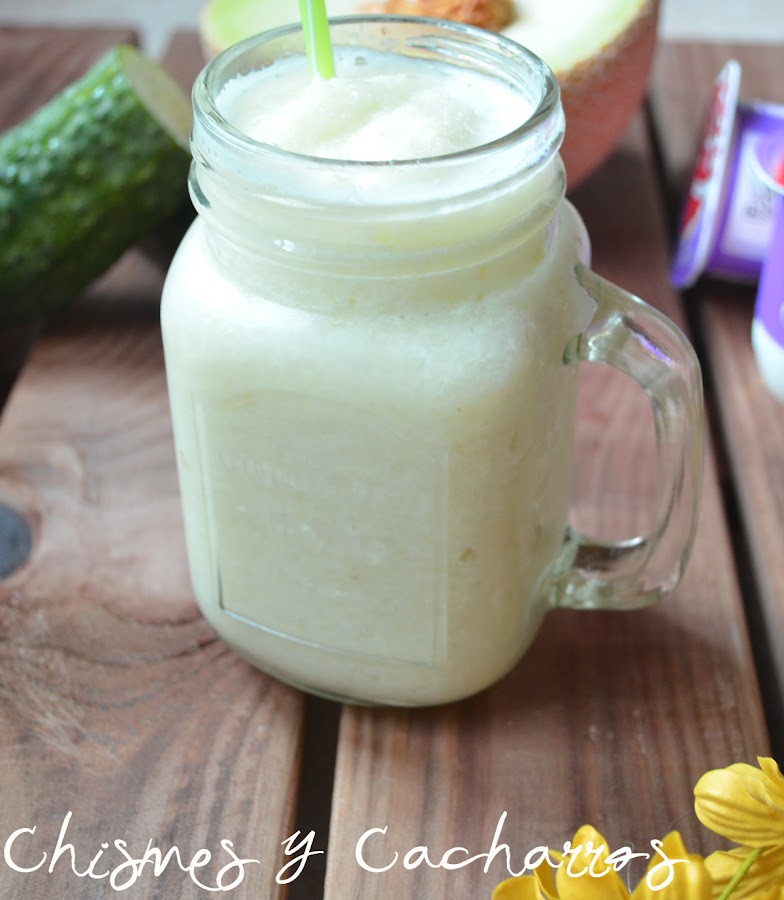 Otro rico smoothie en este caso con melón y pepino. Una mezcla que puede parecer un poco especial pero está delicioso. Una merienda que no nos aportará casi calorías.