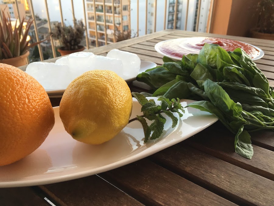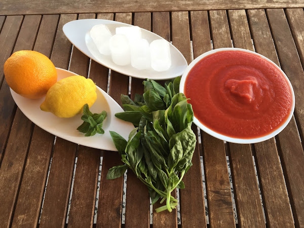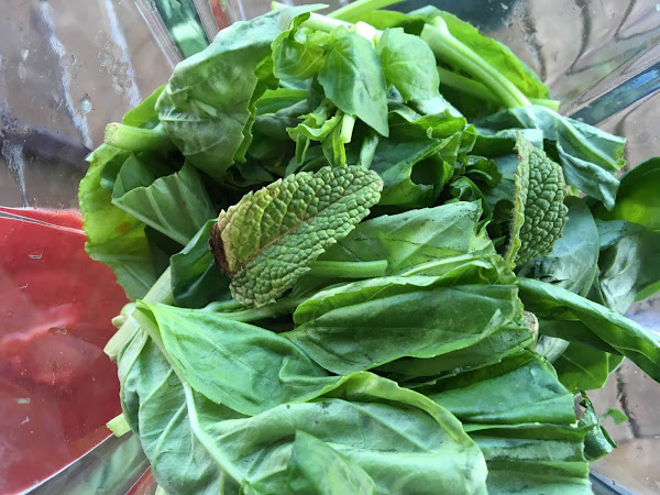 Seguidamente troceamos los tallos y hojas de albahaca y añadimos 2 hojas de menta.