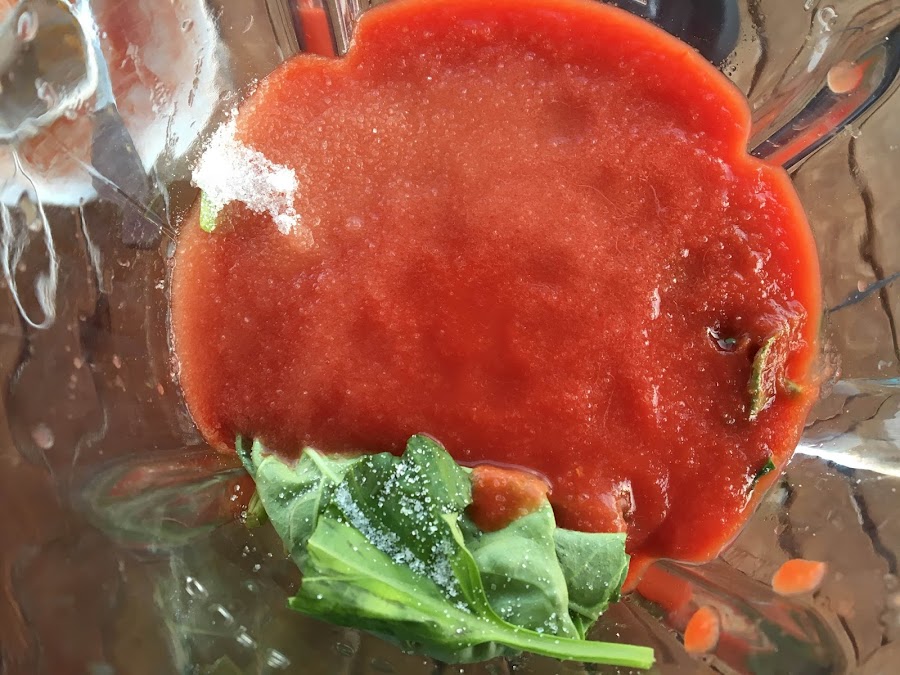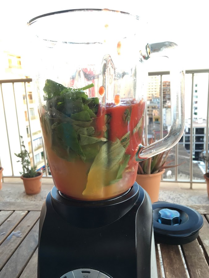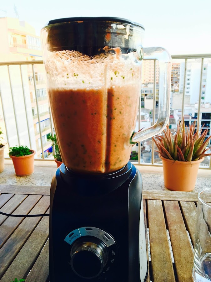 (Si nos gusta el picante podremos añadirle una punta de chile picado, tanto en la parte final como antes de batir)