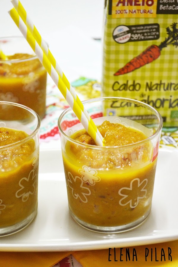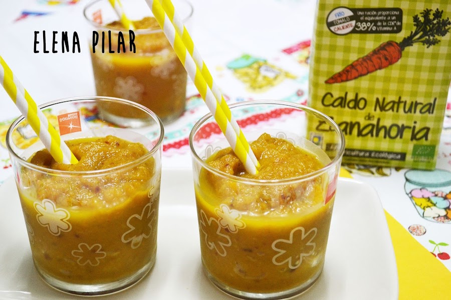 Así que, cuando recibí, por cortesía de Aneto Natural un lote de sus Caldos Funcionales, y uno de ellos era su Caldo Natural de Zanahoria Ecológica, no lo dudé. Supe de inmediato que su destino sería el de servir de base para mi primera receta de un smoothie vegetal. Un zumito bien fresco, ligero, sin azúcar añadido, ideal para combatir el calor horroroso del verano, que nos hidrata y a la vez nos alimenta. Un smoothie de zanahoria que he elaborado basándome (tratándose de mí, no podía ser de otra forma) en el sabor de la tarta de zanahoria. Para aportarle dulzor, una manzana Golden y cuatro dátiles y, para incorporarle el toque especiado, canela y jengibre. No necesita más, de verdad. Con estos pocos ingredientes, el Caldo Natural de Zanahoria Ecológica Aneto Natural y un robot que triture bien, tendréis un batido refrescante, súper completo, saludabilísimo y delicioso.