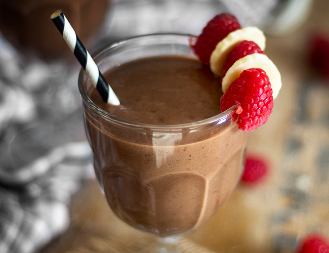 Y con este toca decir "adiós" al especial de smoothies que he preparado este verano. He intentado traer diferentes sabores, colores, combinaciones y formas de presentarlo: bol, copa o vaso. Acabo con el smoothie con un toque de chocolate, el que para muchos será el más atractivo. Pero os aseguro de que todas las combinaciones que os he traído estos días son fabulosas. No sé con cuál quedarme... ¿Naranja? ¿Rojo? ¿Morado? ¡Todos están buenísimos!