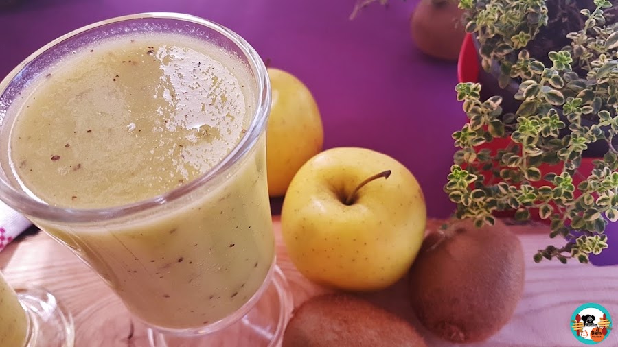 1.-Lavamos la manzana, la cortamos en trozos, le quitamos el corazón. Pelamos los kiwis, los ponemos en el vaso de la batidora con la manzana. Le quitamos las hebras al apio. Añadimos un vaso de agua y trituramos bien, dejando algunos trozos pequeños. Servimos el smoothies de manzana con kiwis y apio en vasos o copas de cristales.