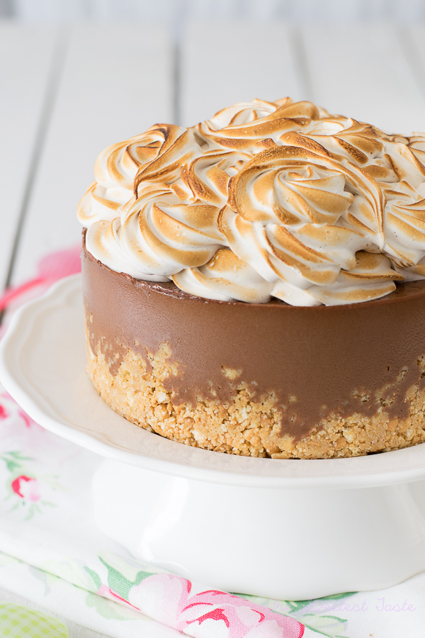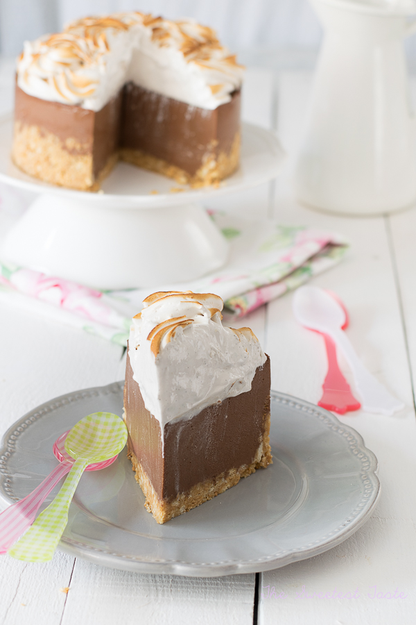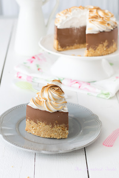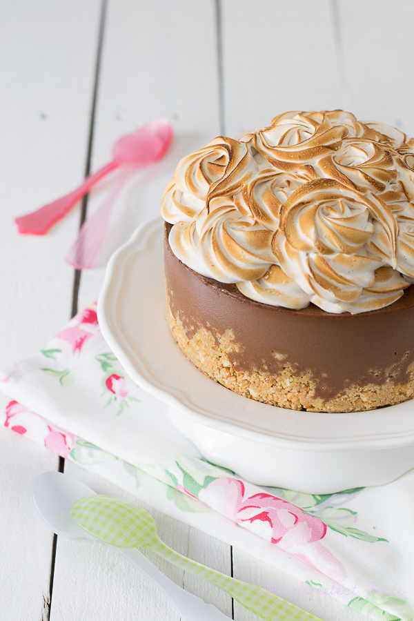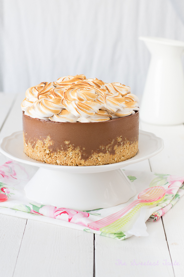 Este cheesecake es de s"mores porque me gusta mucho el nombre del "postre" por llamarlo de alguna manera, tan típicamente americano, pero fácilmente esta maravillosa tarta podría ser un cheesecake de chocolate y merengue y no pasaría nada.